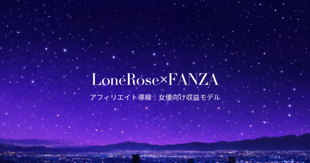 保護中: LoveRose×FANZAアフィリエイト導線|女優向け収益モデル(作品紹介+男性用デバイス+配信40%)